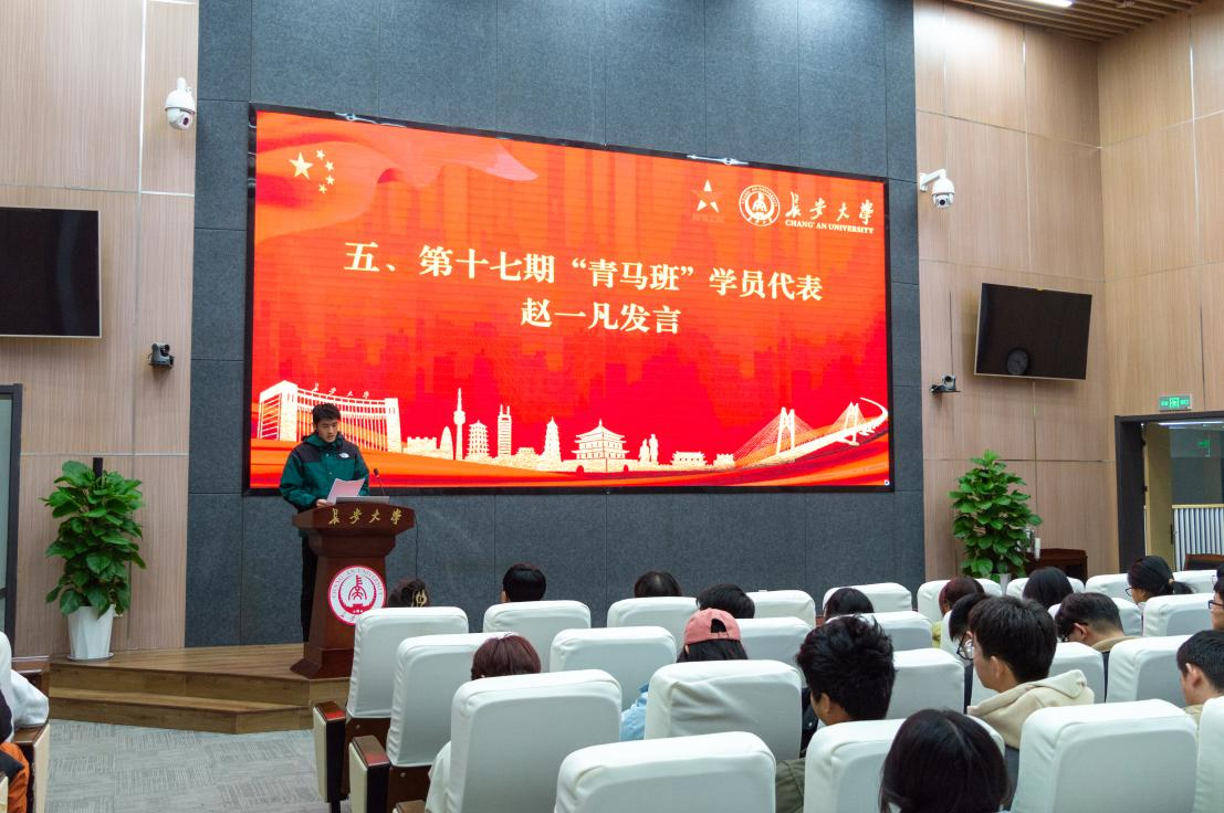 第十七期“青马班”学员代表赵一凡向学院提供宝贵学习机会表达了感谢,表示将专心学习马克思主义理论,努力提高专业技能,养成良好的纪律规范,积极投身志愿服务,努力成为一名优秀的青年马克思主义者。