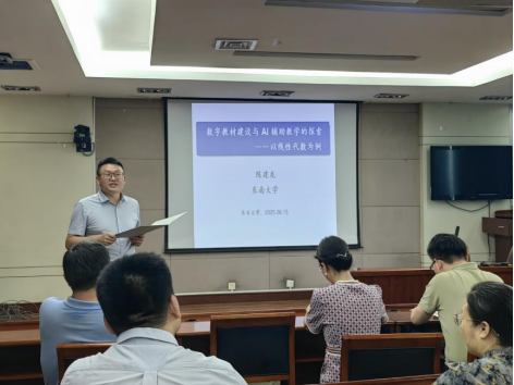 为深化教育教学数字化改革,推动数字教材与人工智能辅助教学及智慧课程建设,永利yl23411于2025年6月15日下午在南校区学术交流中心第一会议室举办2025年“双万计划”系列讲座,特邀东南大学陈建龙教授作主题为“数字教材建设与AI辅助教学的探索——以线性代数为例”的报告。院长宋学力教授主持会议,学院20余名教师参加培训。
