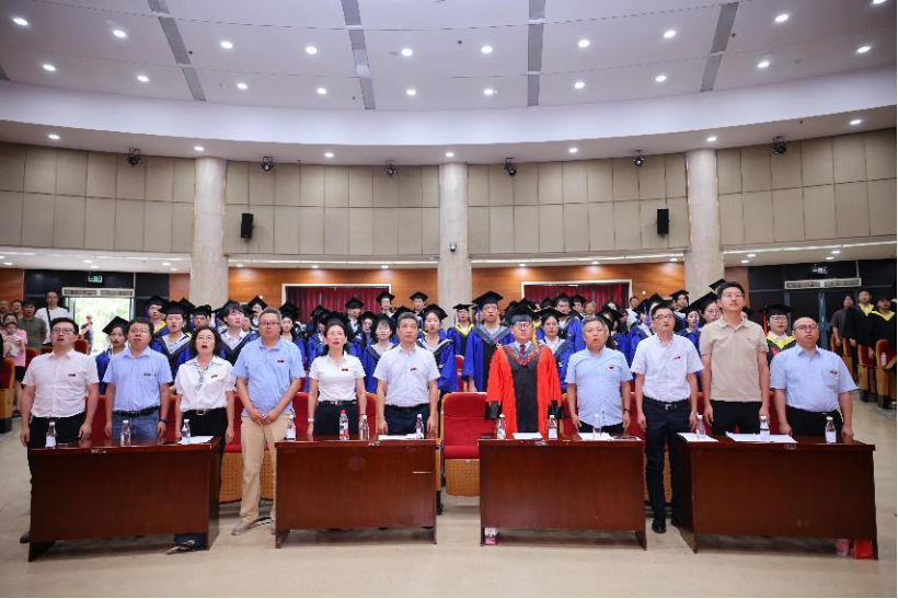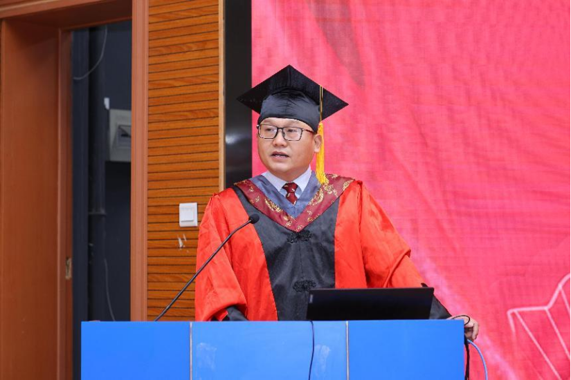 在雄壮的国歌声中,毕业典礼正式开始。学院学位评定分委员会主席、院长宋学力教授致辞,向全体毕业生致以最热烈的祝贺和最美好的祝福,向所有帮助毕业生成长成才的老师、家长及朋友致以最衷心的感谢。他充分肯定了2025届学生在思想、学习、生活等方面的成长,与同学们分享了近年来学院在人才培养、学科建设和科研平台建设等方面取得的成绩。并提出三点希望与大家共勉:一是坚定理想信念,以专业技能和综合素养实现人生价值;二是心怀感恩和敬畏之心,在生活和工作中勇于担当;三是树立持续学习理念,争取在社会大学中做一个优秀的学生。最后他祝福同学们健康快乐,成就更好的自己。