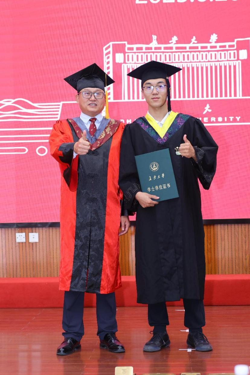 院党委书记闫永刚宣读了2025届本科生、硕士研究生、博士研究生学位授予决定。学院学位评定分委员会主席、院长宋学力教授为毕业生正冠拨穗、颁发学位证书。