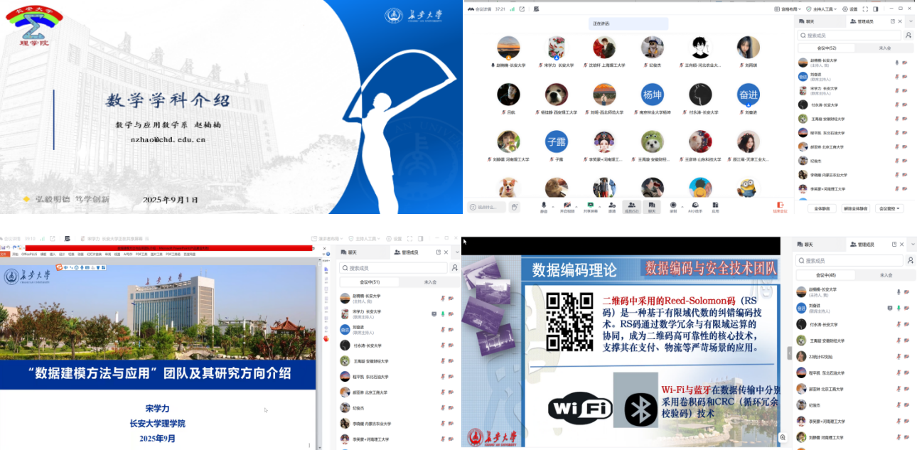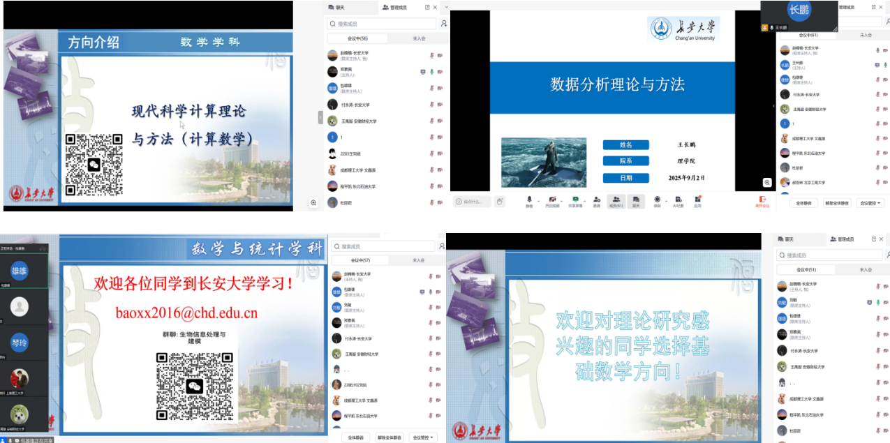 2025年9月1日至2日晚,数学学科成功举办了以“数聚长大,智汇未来”为主题的2026届优秀大学生预推免线上活动。本次活动通过腾讯会议平台举行,旨在面向全国高校数学及相关专业的优秀本科生,全面展示学科特色、科研平台与师资力量,推动高质量研究生招生与培养工作。活动由学科建设执行主任赵楠楠老师主持。