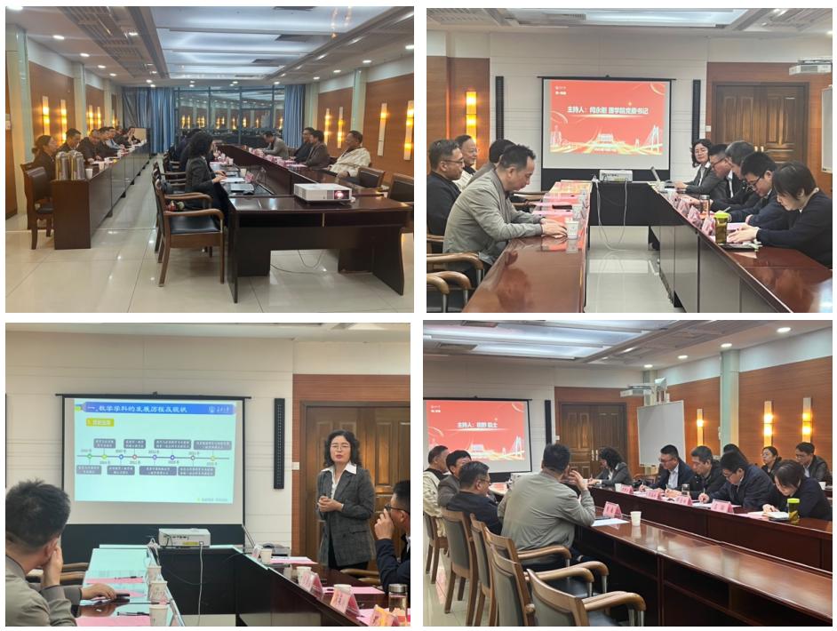 会议紧密围绕“数学学科建设”这一核心议题,凝聚共识,共商发展。永利yl23411院长宋学力教授对各位专家长期以来给予我院数学学科发展的关注与支持表示衷心的感谢,简要介绍了数学学科的基本情况。数学学科主任郑素佩教授就数学学科现状进行了汇报,全面梳理了师资队伍、人才培养、条件保障等方面的建设成效,深刻剖析了现存问题,并明确了未来发展规划。