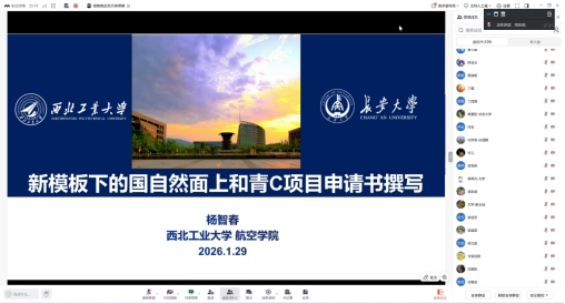 邓庆田代表学院对杨智春教授的指导表示热烈欢迎与衷心感谢,介绍了杨教授在相关研究领域的学术成就,在国家自然科学基金申请指导方面积累的深厚经验。强调2026年基金申报政策的调整对全院教师而言既是挑战也是机遇,此次讲座旨在为教师搭建学习交流的优质平台,帮助大家精准把握政策导向、掌握撰写技巧,为后续申报工作奠定坚实基础。