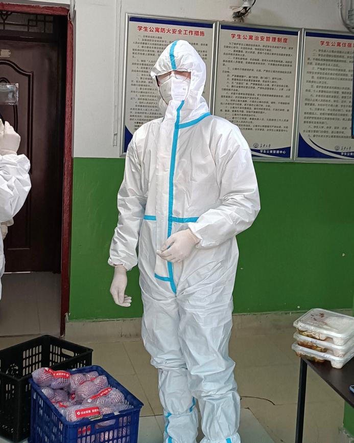 “大家别急,我这就去。”在南校区北院,永利yl234112020级力学专业研究生李腾,自志愿送餐活动起,他的送餐脚步就从未停下,直至接到集中隔离通知前夕。湿漉漉的防护服、凌乱的头发,是他每次送完餐回到宿舍的日常,但他从未有半句抱怨,一次次地跑向餐厅,只是为了能让同学们尽早吃上热腾腾的饭菜。