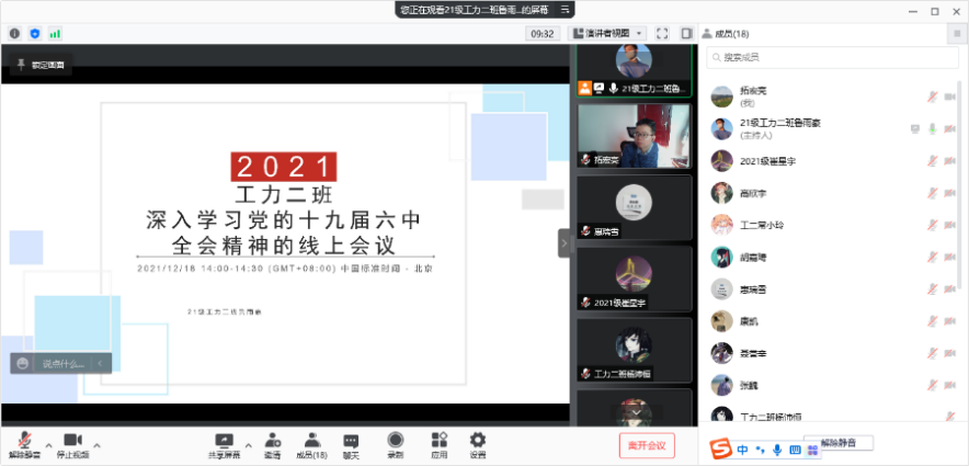 2021年12月下旬,永利yl234112021级工程力学二班组织召开了线上主题团日活动,会议的主题是学习党的十九届六中全会精神。班主任拓宏亮与全体同学参加了本次会议。