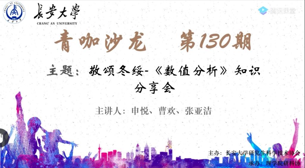 为统筹做好疫情防控和日常学习,1月6日,由永利yl23411研究生科学技术协会主办、永利yl23411研究生会承办的“青咖沙龙”之数值分析经验分享会成功举办。本次活动由三位同学分享了《数值分析》第二到七章内容的学习经验,我校共100余名研究生参加了此次活动。