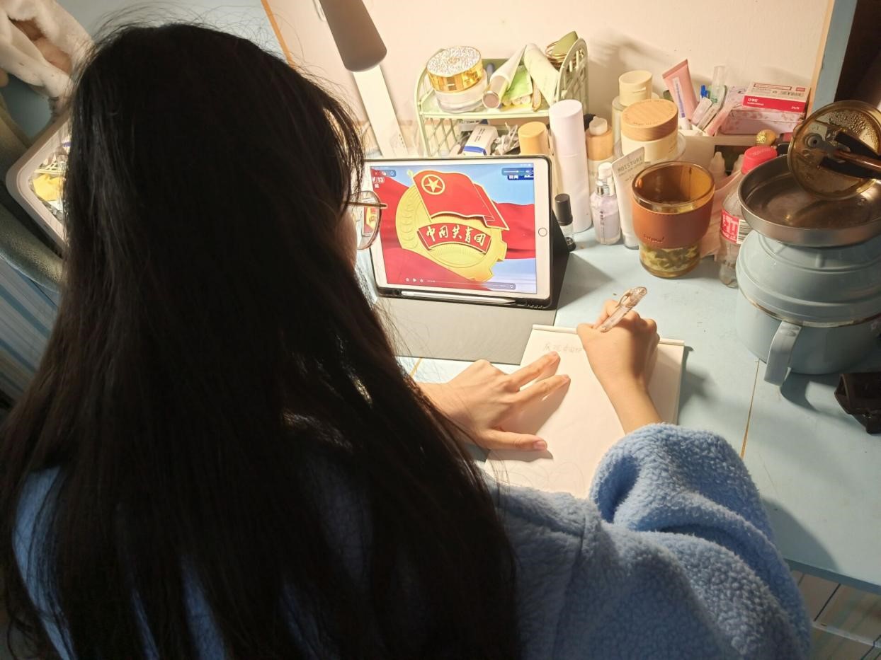 学院本科生团员薛佳敏表示:“百年征程之路铸就了中国的青春荣光,而我们正值风华。那如何让我们的青春绽放光芒呢?奉献是最无悔的宣言。哪里有需要,哪里就有团员的身影。疫情期间,身为志愿者的我,为同学们服务的同时,也不断充实自我,提高自身价值。一心向党是融入血脉的忠诚。党有号召,团有行动,身为一名团员的我,怀着一颗感恩的心,热爱党,热爱团,拥护党,拥护团。清澈的爱,只为祖国。我将把青春绽放在祖国最需要的地方,将小我的成长融入到祖国大我的发展中去。”