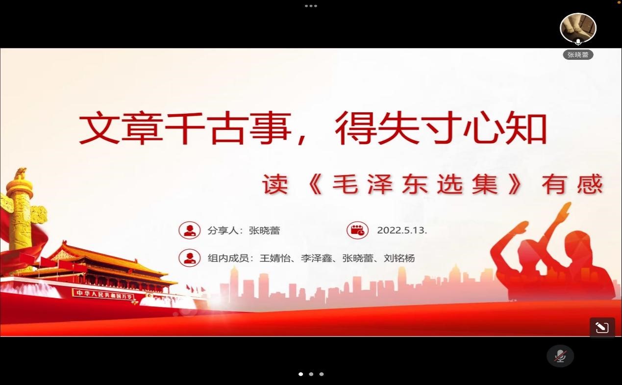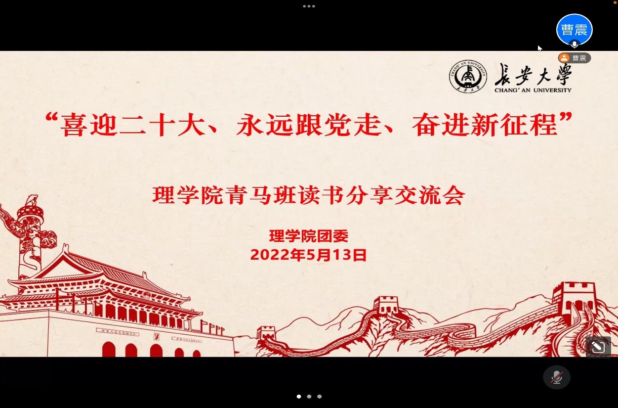 为迎接党的二十大胜利召开,不断提升青年学生理论素养和文化内涵。5月13日中午,永利yl23411青马班通过腾讯会议召开了读书分享交流会。学院团委书记刘延海、团委副书记朱悦以及青马班全体成员参加本次活动,本次活动由曹震主持。