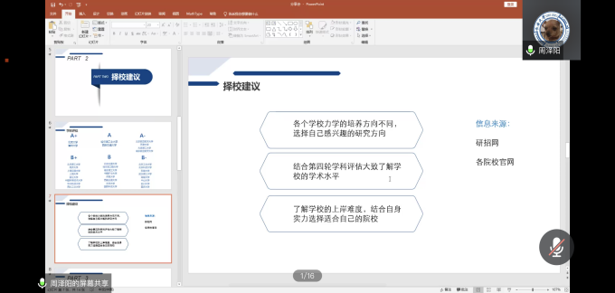 2018级数学与应数专业的马达、2018级信息与计算科学专业的赵磊、2018级工程力学专业的周泽阳、胡帅分享了考研经验,包括院校选择、复习时间、考研的心得体会、获取信息与考研流程。2018级数学与应用数学专业的王鹰飞、2018级工程力学专业的杨凯分享了就业经验包括实习、简历、面试等方面的经验和心得。