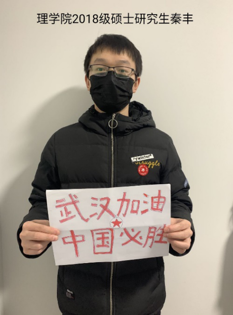 在这场“战疫”面前,作为一名研究生党员,能做的就是将增强“四个意识”、坚定“四个自信”、做到“两个维护”落实到实际行动中,就是要响应中央号召,耐住性子,居家减少外出;就是要敢于发声亮剑,戳破一切谣言流言;就是要积极配合,遵守要求,坚持早汇报、真汇报、不早到;就是要精修内功,用好这段“宅时光”。只要我们上下一心、各方用力,众志成城、用所尽用,就一定能够打赢这场疫情阻击战!
