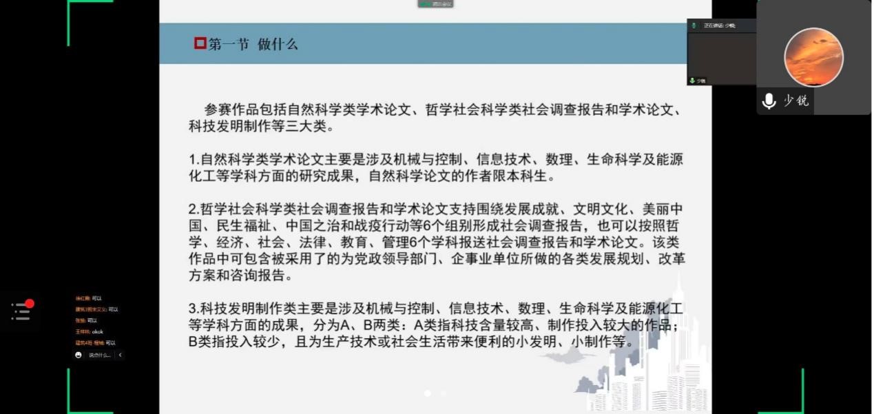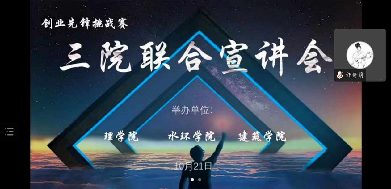 为营造创新创业氛围、激发大学生创新意识、发掘和培育优秀创业项目和团队。10月21日,永利yl23411联合水环学院与建筑学院利用腾讯会议线上举办了第十三届“创业先锋”挑战赛宣讲会。本次宣讲会邀请到建筑学院教师王少锐及高年级获奖学生代表主讲,各学院有意愿参赛学生参加。