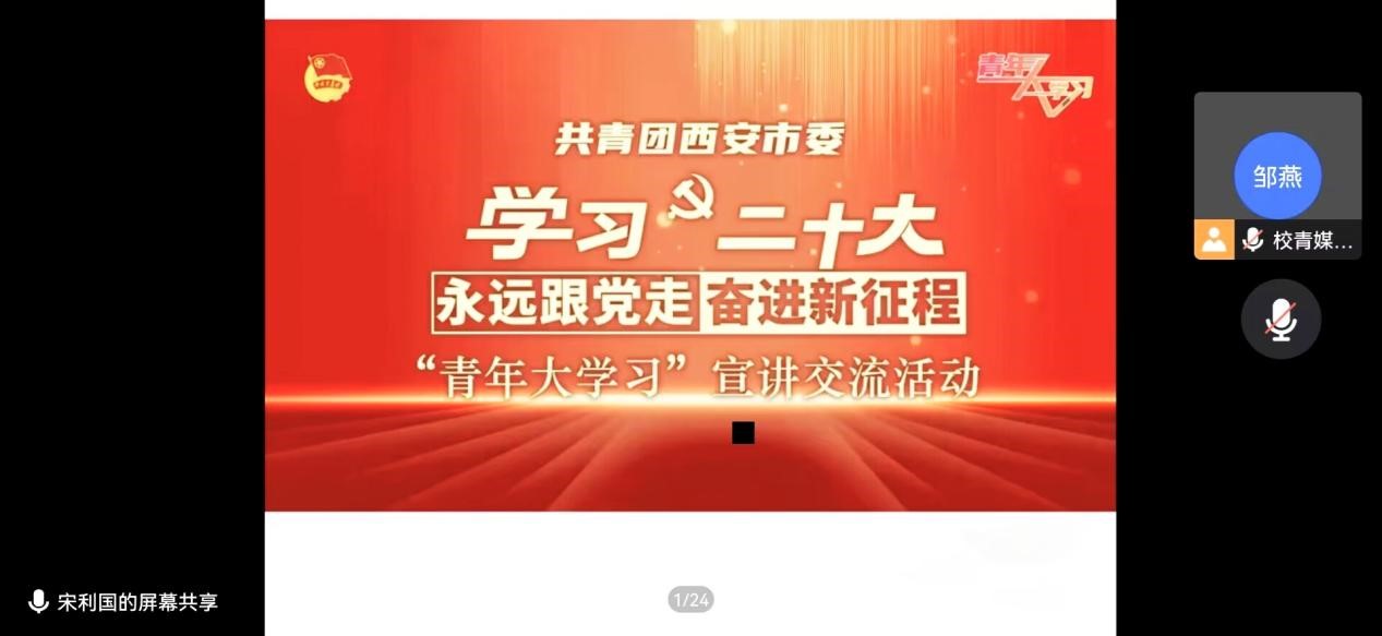 为深入学习党的二十大精神,深刻领会习近平总书记关于青年工作的重要思想。11月9日,永利yl23411在北辰楼206室设置分会场,参加校团委组织团支部书记暨新发展团员培训第三讲。本次培训由陕西省团校宋利国老师授课,学院团委书记杨雪菲、团委副书记高靖然、2022级新生团支部书记、学生社团团支部书记和2022年新发展团员参加培训。