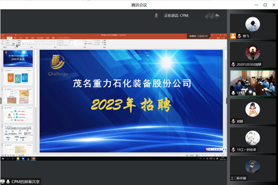 会上,屈颖代表永利yl23411永利yl23411对茂名重力石化装备股份公司表示热烈欢迎,表达了加强校企合作,开展供需对接,促进学生就业的愿望,介绍了永利yl23411永利yl23411和2023届毕业生的基本情况,号召同学们积极行动、认真准备,紧抓求职的黄金期和窗口期。黄嗣罗代表公司对学院的邀请表示感谢,对茂名市以及茂名重力石化装备股份公司进行了全面介绍。他结合企业招聘经历,和同学们分享了用人单位对毕业生的专业知识、团队合作、抗压能力、语言表达等方面的要求。随后,雷小娣、李卫卫结合求学经历和工作经历,向同学们分享了打牢专业知识,提升综合素质,促进职业发展的经验。最后,杨世博进行了招聘宣讲,对公司的资质构成、专业需求、福利待遇和职业通道等进行了详细介绍,并对同学们提出的问题进行解答。
