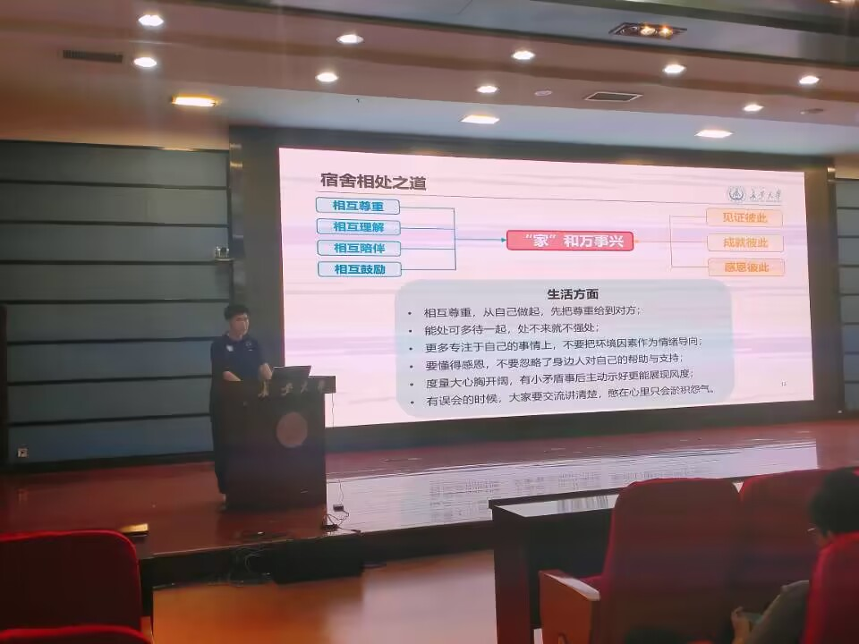 屈颖为本次宣讲会致辞。她代表学院向本次宣讲的6名同学表示诚挚的欢迎,向他们在校期间取得的优异成绩表示热烈的祝贺。她希望同学们认真倾听,深入思考,总结优秀大学生的共同特征和成长经验,进而见贤思齐、查漏补缺、砥砺奋进。希望同学们,尤其是学生干部,从班级引领之星和宿舍文明之星的分享中,学习班级建设、宿舍建设的好经验、好做法,不断提升班级、宿舍的凝聚力和先进性。施海林、王涔宇、刘风梁、吴文娜、朱悦、郑昊楷,分别围绕专业学习、学科竞赛、科创活动、保研经验、学生工作、文体活动、班级建设、宿舍建设等内容进行宣讲,鼓励同学们明确目标,珍惜韶华,勤奋学习,全面发展,度过美好的大学生活。最后,屈颖为每位宣讲同学颁发了宣讲证书,并合影留念。