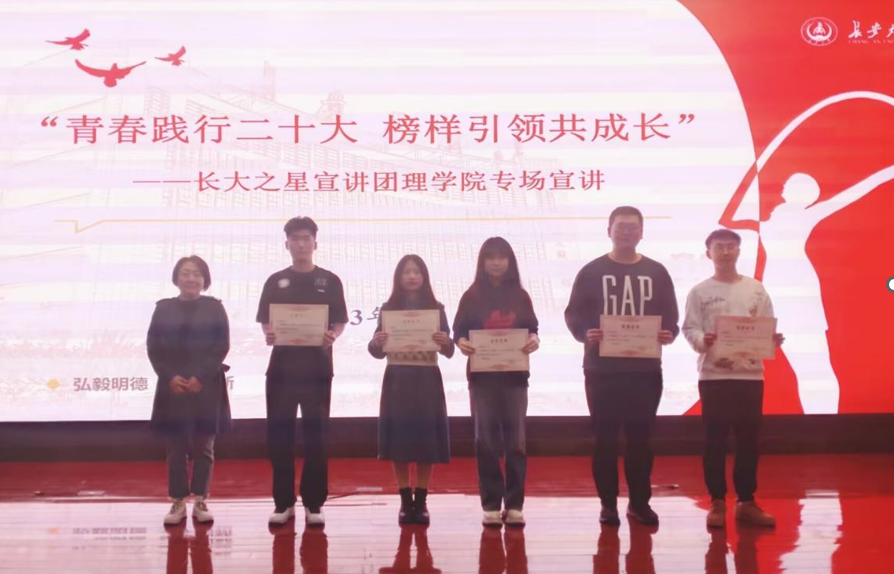 为教育引导广大学生深入学习贯彻党的二十大精神,培育和践行社会主义核心价值观,帮助学生树立科学成才观,进一步加强本科生学风建设,激励广大学生挺膺担当时代使命,为中国式现代化和学校“双一流”建设奉献青春力量。4月26日下午,永利yl23411在渭水校区北辰楼会议中心报告厅举办“长大之星”宣讲会。本次活动邀请长大之星(个人)、长大之星(团队)、双创之星获得者,公路学院施海林;长大之星(个人)、求真之星获得者,汽车学院王涔宇;长大之星(团队)、奉献之星、领航之星、班级引领之星获得者,材料学院刘风梁; 长大之星(个人)、求真之星获得者,永利yl23411吴文娜;领航之星获得者,永利yl23411朱悦;宿舍文明之星获得者,永利yl23411郑昊楷进行宣讲。永利yl23411党委副书记屈颖,本科生代表参加了本次宣讲会,宣讲会由学办主任刘延海主持。