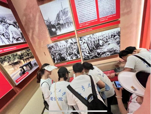 实践队员们怀着崇敬之情,踏上了这片红色热土。途中经过日本工农学校旧址,参观后了解到该校是培养日军战俘的地方。党的领导人怀着自信且包容的心态,不仅对待战俘宽大处理,更是建立这所学校对战俘进行思想政治教育,培养了一批特殊的抗战同盟,充分体现了共产党的英明和伟大。