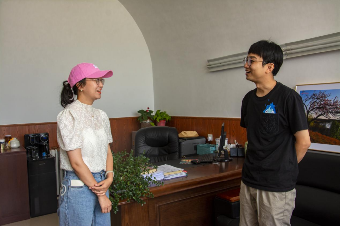朱主任与实践队杨雪菲老师交谈