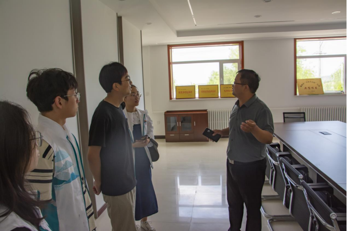 随后,队员们跟随杜副镇长来到种植大棚进行参观,了解当地农业经济结构。在与杜副镇长以及当地技术人员的交流中,实践队得知目前圪崂湾村主要种植阳光玫瑰,以强化现代科技应用为抓手,积极与各个高校科研团队进行合作,同时政府也下派了种植技术人员,充分调动各方积极性,助力乡村农业高质量发展。