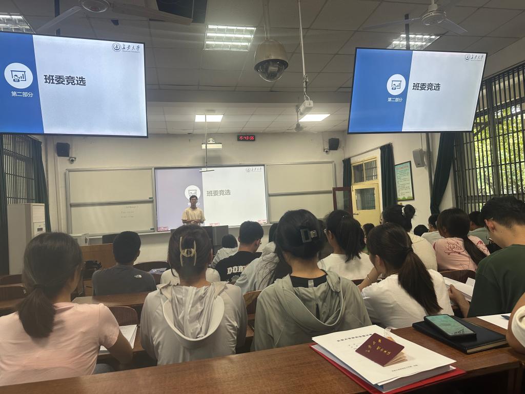 在班委竞选环节,孙东生等同学积极地参与班委竞选,通过参选同学竞选演讲、班级同学投票,班级选举产生2023级研究生班委。