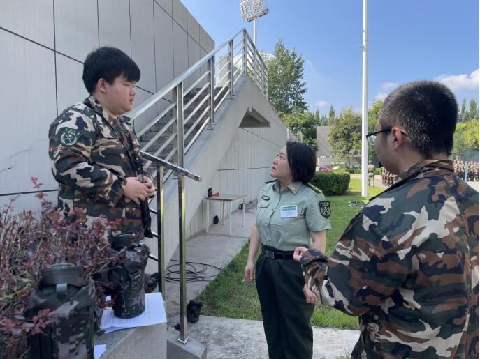 烈日当头,政委屈颖与“小战士”们在校道上共同训练,深入感受新生的军训生活。在训练之余,她向同学们强调了军训的重要性:大学新生开学的军训是一项锤炼意志、强化身体、增强团队精神和培养爱国主义精神的重要活动,希望同学们珍惜军训机会,端正训练态度,圆满完成各项训练,取得优异的训练成果。