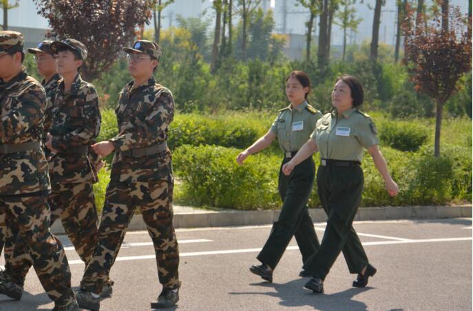 政委屈颖、指导员姜雨彤与学生们共同训练