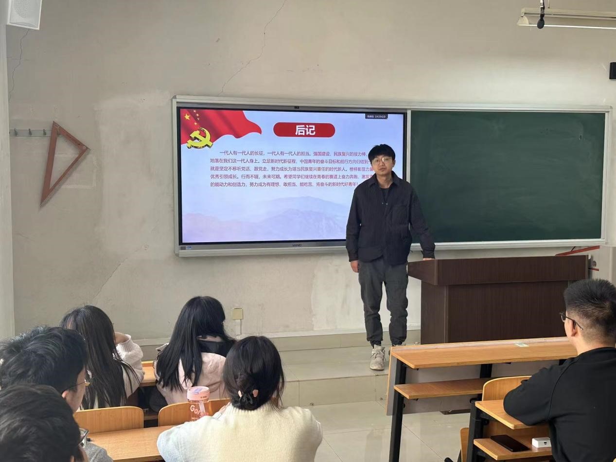 杨雪菲结合习近平总书记关于青年工作的重要论述,以习近平总书记对于青年的寄语为切入点,鼓励各班团支书展现勇当先锋的青春气质,牢记习近平总书记嘱托,磨炼本领,迎难而上,争当有理想、敢担当、能吃苦、肯奋斗的新时代好青年。他带领同学们学习了共青团的基础理论知识和主要工作,要求大家牢记团员身份,认真履行团员义务,正确行使团员权利,积极向上,追求先进,争做一名优秀的共青团员。