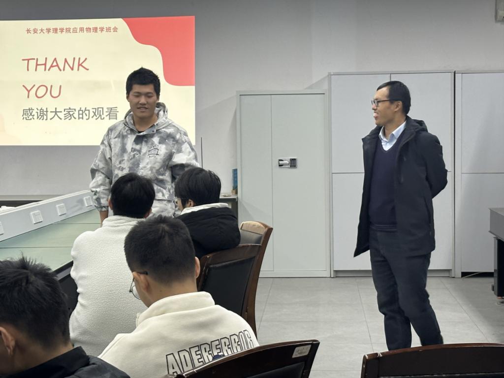 第二阶段,侯兆阳、王凤龙两位导师分别就本专业学生现阶段学习状态和实验室安全两个方面与同学们展开讨论。同学们反映,大学生活对自觉性的要求较高,但自身的时间管理方面还存在问题。侯兆阳借此指出引起大学生学习方面出现问题的三道红线:作息问题、游戏问题和手机问题,并通过具体案例:“睡懒觉旷课成习惯”“沉迷游戏无心学习”“熬夜刷短视频”等最终导致学业荒废。随后他强调了“自律”及“坚持”的重要性,指出大学阶段的学习过程需要持之以恒的动力,做好时间管理,严格要求自己,营造良好学风,促进自身的全面发展。随后王凤龙讲解了实验室相关安全规定,包括电闸的使用方法、用电器的使用规范等,强调实验室内禁止使用大功率用电器,希望同学们在实验室内遵守安全第一的准则,提高安全意识,通晓实验室安全知识,掌握实验室安全操作技能,做好安全防护。