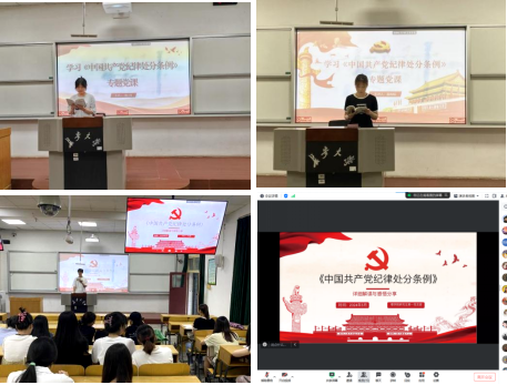 第一党小组由组织委员盖灿灿和宣传委员杨心怡领学。会上全体党员围绕党纪学习材料,并结合自身情况发表了自己对《条例》的理解和认识。第二党小组由支部书记许志航进行领学。他从《条例》相关的案例、概念等方面对《条例》进行深入浅出的解读,帮助党员同志们进一步理解把握《条例》的主旨要义和规定要求。第三党小组组长刘宗萱重点介绍了《条例》修订的基本情况、重要意义、主旨要义以及主要内容。刘宗萱特别强调党员要遵纪守法,并引用了多个党员违反党纪校规受到相应处理的警示案例,提醒学生党员要时刻清醒,自觉规范一言一行,争做遵守党规党纪的合格党员。会议中,党员同志们积极发言,从不同角度对《条例》的主要内容进行理解与讨论。