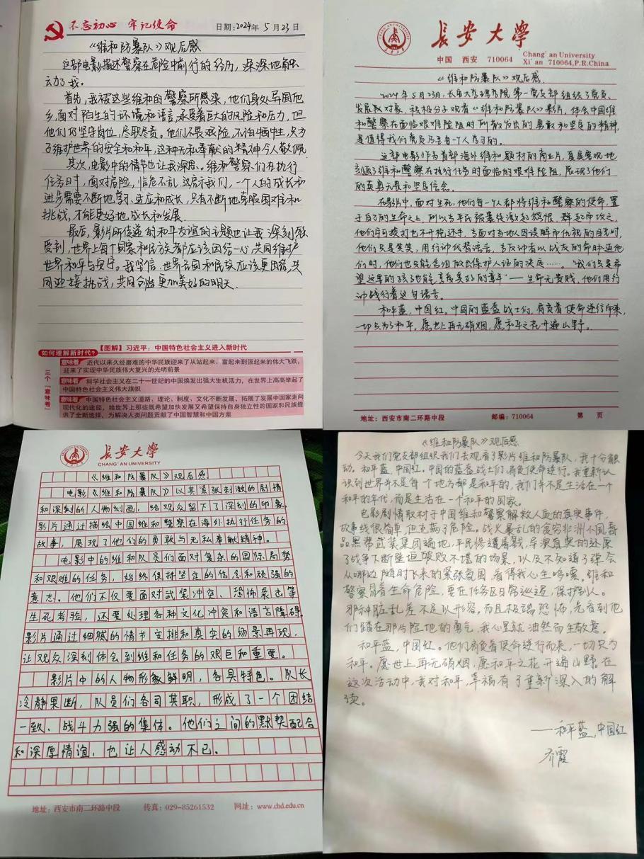 学习维和英雄事迹,弘扬爱国精神。影片结束后,支部党员被中国维和警察的牺牲与奉献精神所感动,大家在一起分享着自己的观影感悟并写下了自己的感受,纷纷表示在今后的学习和工作中要坚持以实际行动践行初心使命,凝聚团结奋进力量,为学校高质量发展贡献力量。