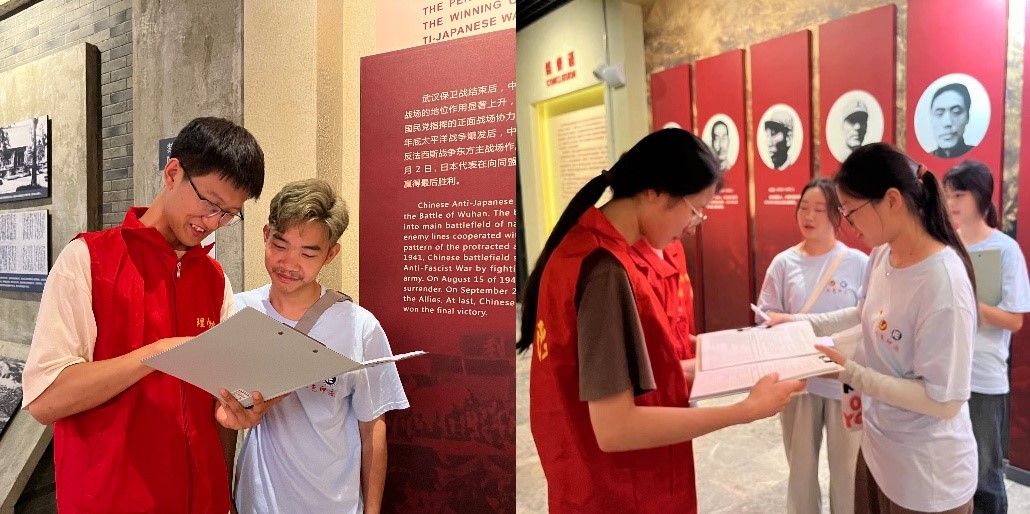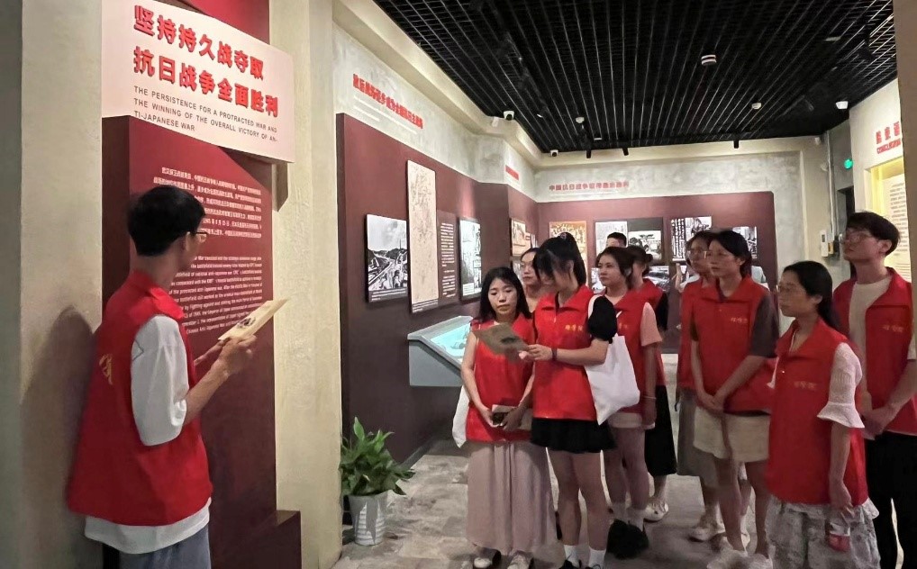 参观途中,实践队遇到同样前来学习的湖北师范大学社会实践队。两队师生进行了友好的交流,许志航主动向湖北师范大学的同学们介绍了八路军在武汉的英勇事迹,分享了自己对八路军精神的深刻理解和感悟。两队成员就如何在新时代传承和弘扬革命精神进行了热烈讨论,共同表示要将这份红色记忆铭记于心,用实际行动践行青春使命。