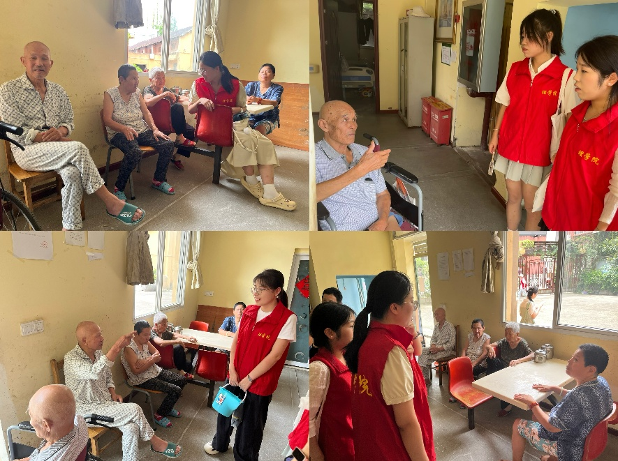 养老院工作人员介绍了院内的情况和老人的日常生活,实践队员们耐心聆听,为即将开展的服务工作做好充足的准备。他们了解到院内现居住30名老人,老人们表示在护佑养老院吃得营养,住得舒适,院长和工作人员也十分敬业,对他们关怀备至。随后,队员们围坐在老人身边,陪老人们聊天。老人们仿佛打开了记忆的闸门,纷纷讲述起自己亲身经历的武汉红色事件,从辛亥革命的烽火岁月到新中国成立的喜悦时刻,每一个故事都饱含深情,让在场的每一个人都深受感动。队员们认真倾听,不时点头表示赞同。