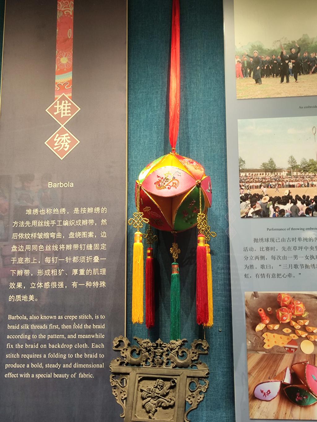 壮锦刺绣“双狮滚绣”展示