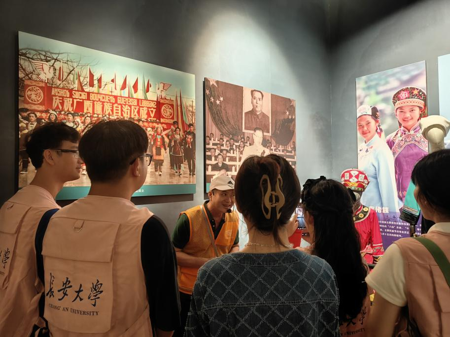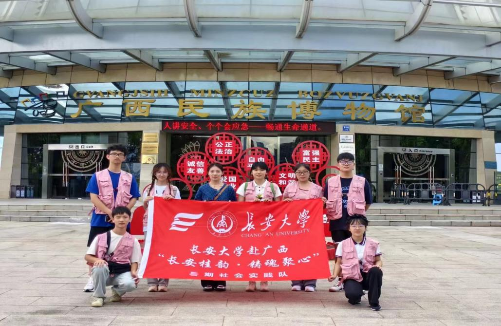 文化认同是最深层次的认同。为进一步增强大学生文化自信,深入开展大学生铸牢中华民族共同体意识教育。7月24日,在指导老师姜雨彤的带领下,永利yl23411永利yl23411赴广西“长安桂韵·铸魂聚心”暑期社会实践队前往广西民族博物馆,参观铸牢中华民族共同体意识历史文化展。