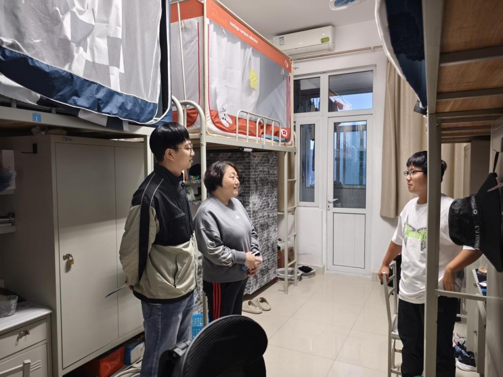在走访过程中,屈颖提醒同学们注意国庆假期宿舍用电安全与出行安全,并就宿舍环境卫生、学习氛围和舍友关系等方面与同学们进行了深入交流。