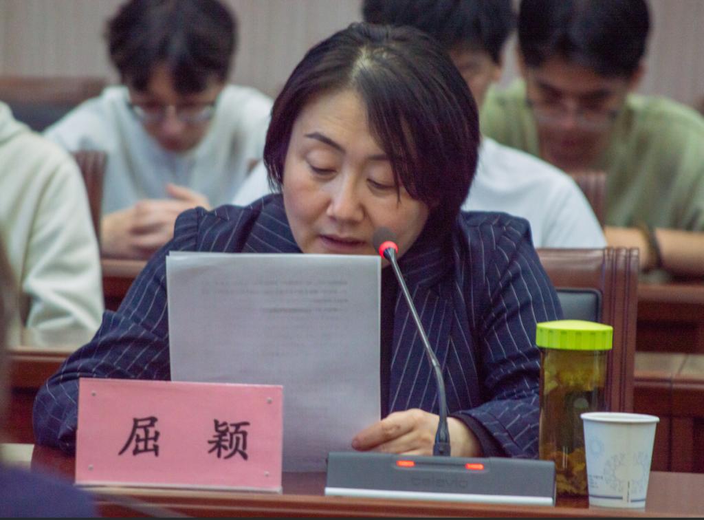 屈颖代表学院全体师生对党英杰校友的到来表示热烈的欢迎。她指出,优秀校友是广大学子奋斗的好榜样,同学们应把握机会,树立明确目标,从优秀校友的经历与经验中收获更多宝贵财富,为个人成长赋能。