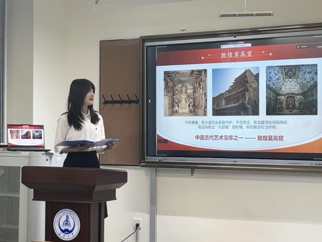 随后,宣讲团成员熊嘉瑜同志以一首《我和我的祖国》拉开序幕,用“海与浪花”的比喻,生动诠释了个人与祖国密不可分的关系。接着,她着眼于讲述敦煌莫高窟的历史与文化,以及敦煌守护人樊锦诗的故事。她深情地讲述道:“一腔爱,一洞画,一场文化苦旅,从青春到白发。心归处,是敦煌。”这句话不仅是对樊锦诗一生的写照,更是对一代代莫高窟守护人的礼赞。她强调,樊锦诗的故事生动诠释了“一生择一事,一事终一生”的精神境界,展现了平凡岗位上的伟大坚守。宣讲的最后,熊嘉瑜引用了习近平总书记在纪念五四运动100周年大会上的讲话:“只有把自己的小我融入祖国的大我、人民的大我之中,与时代同步伐、与人民共命运,才能更好实现人生价值、升华人生境界。”她呼吁大家以樊锦诗为榜样,将个人的理想追求融入到国家和民族的事业中,愿将青春付华夏,共谱华章庆华年。