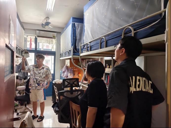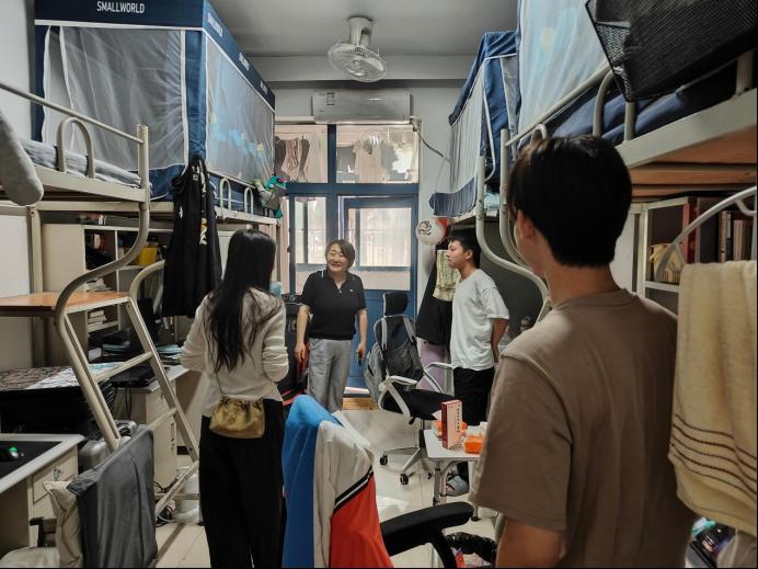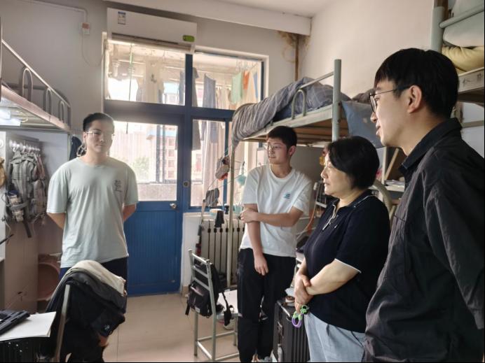 屈颖一行人对宿舍内的卫生情况、用电安全等进行了仔细检查,提醒同学们做好离、返校登记,增强风险防范意识,离校前务必切断电源,锁好门窗,妥善保管个人财物,留校同学要明确安全用电的重要性,自觉遵守宿舍管理规定,确保自身和他人的生命财产安全。