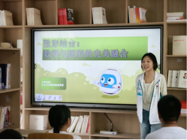 刘梦莎以“数形结合:数学与图形的完美融合”为主题,用图形变化使同学们理解算术公式,培养了同学们的空间思维和逻辑推理能力,使抽象的数学知识变得生动有趣。