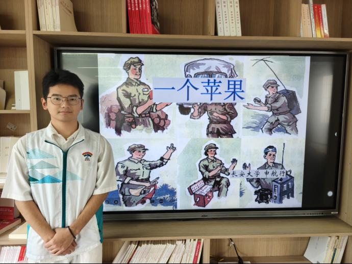 申航行通过革命故事《一个苹果》的阅读理解讲解,重点分析了红色故事场景和人物形象,并指导同学们结合自身经历撰写读后感,激发了同学们的爱国热情。
