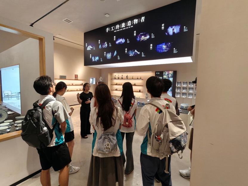 在三宝国际陶艺村,实践队与村委会工作人员座谈,了解三宝村以数字经济赋能陶瓷产业发展情况,实地参观三宝数字产业基地。实践队还与陶瓷艺人就陶瓷器型的几何比例与结构稳定性进行了交流。在玉柏玲珑公司,实践队围绕陶瓷产品创新、生产模式变革、销售渠道拓展等进行调研,与企业工作人员交流,了解到部分商家利用3D打印等技术开拓国际市场、传播陶瓷文化。