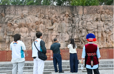 铸牢中华民族共同体意识,是实现中华民族伟大复兴的基础性、系统性工程。在古生村乡愁小院,实践队员詹宇轩在这里开展了一堂生动的微团课,结合小院承载的乡愁记忆与乡土文化,向队员们阐释了文化传承与铸牢中华民族共同体意识教育的重要作用。在鹤庆县的铸牢中华民族共同体意识长廊,刘金满讲述了白族人民在历史进程中积极投身革命,始终坚信民族团结才能奏响华丽乐章的故事。在郑家庄,实践队员在杨亚吉带领下参观了洱源县铸牢中华民族共同体意识主题教育馆;段云带领实践队走访了整个村落,向队员们讲述了村里民族团结进步的故事,一段段故事深入人心,各民族同胞互帮互助的温情日常感染着实践队师生。
