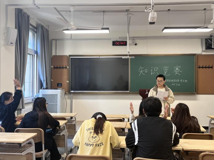 举办一次知识竞赛。为纪念中国人民抗日战争暨世界反法西斯战争胜利80周年,引导广大学生党员深入学习抗战历史、传承红色基因,支部于9月26日举办了抗战历史知识竞赛。竞赛内容涵盖抗日战争的重要战役、历史人物、重大事件、精神内涵以及世界反法西斯战争的相关背景知识。通过以赛促学,党员们进一步加深了对抗战史实的认识,深化了对伟大抗战精神的理解。支部书记吴文哲强调:“知识竞赛是学习抗战历史的一种形式,希望大家将学习热情延续到日常生活中,不断加强对党史的学习,从历史中汲取智慧和力量。”