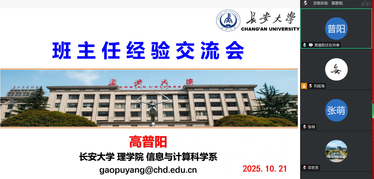 会上,屈颖对各位新任班主任表示欢迎和感谢,强调班主任是学院“三全育人”工作体系的重要力量,是学生教育、管理和服务工作的重要力量。希望各位班主任明确任务、履行职责,加强学业指导与学风建设,深化与学工队伍、学业导师的沟通协作,形成育人合力,促进学生成长成才。高普阳分享了从事班主任工作的经验,介绍了自己在关心关爱学生、学生学业帮扶、科创比赛指导等方面的经验。刘延海领学了《永利yl23411本科生班主任选聘管理办法》、《永利yl23411学生“思政班主任”选聘管理办法》两个文件,结合学院实际,介绍了当前学生工作的主要着力点。