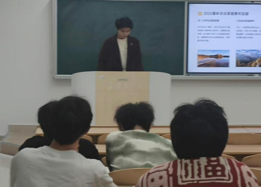 活动中,王孟哲通过图文并茂的案例展示,深入剖析了非法穿越秦岭等行为对生态环境造成的持久破坏以及对个人生命安全构成的威胁。他带领全体成员系统学习了《陕西省秦岭生态环境保护条例》的核心条款,重点解读了自然保护区的相关规定,使同学们清晰认识到秦岭保护的“红线”与“底线”,筑牢了法治思维和环保意识。