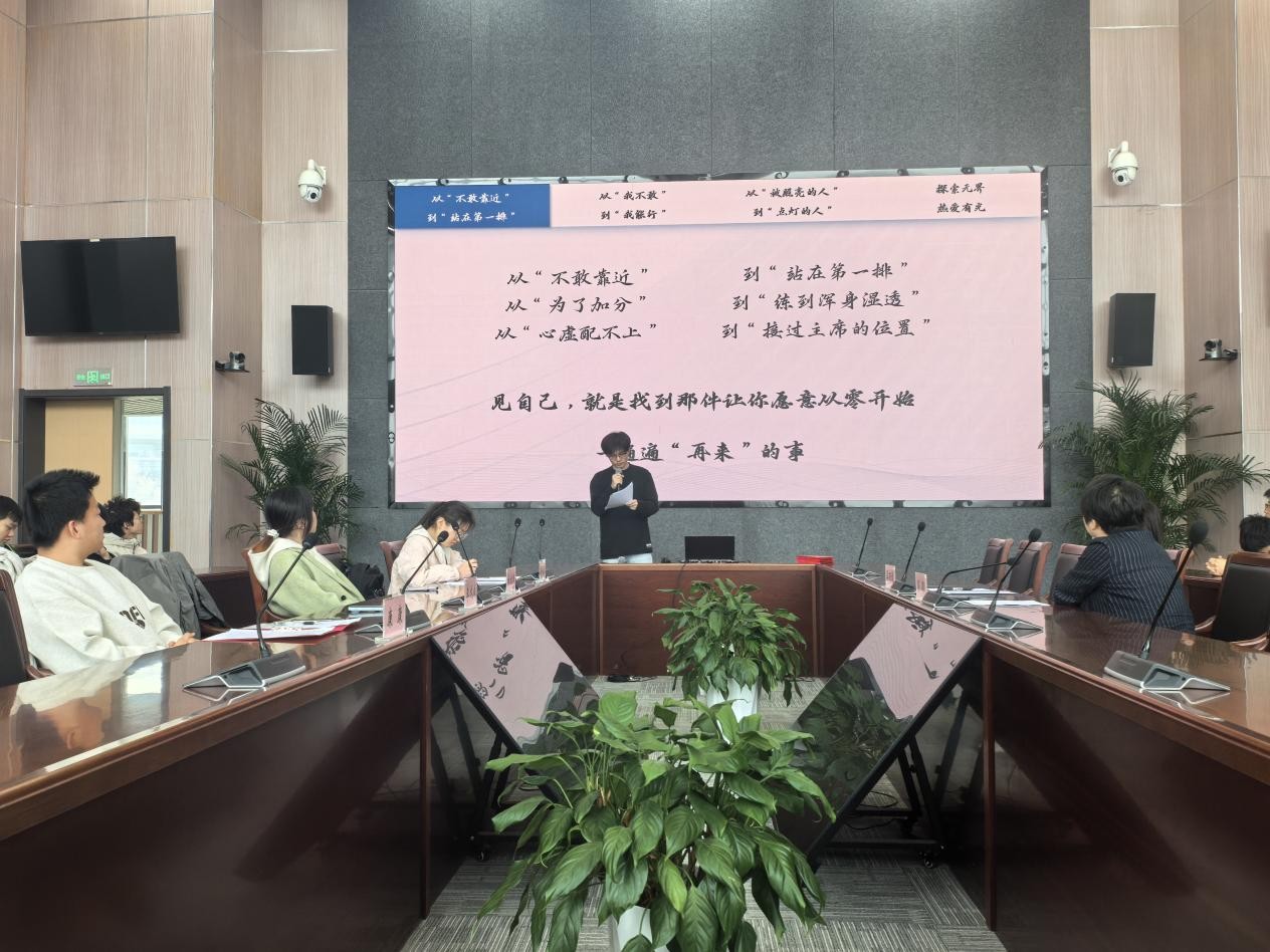 会议伊始,屈颖向本次宣讲的同学表示了热烈欢迎,肯定了他们在各自领域取得的优异成绩和为学院争得的荣誉。她指出,青年学子的成长,既需要个人脚踏实地的拼搏与勇于创新的探索,也离不开集体凝心聚力的陪伴与互帮互助的温暖。“长大之星”中的优秀个人与集体,正是校园中个人出彩与集体生辉的典范。希望同学们能以榜样为镜,练就独当一面的过硬本领,积极融入集体、携手共进,将个人发展与团队成长、学校建设紧密结合,努力成长为新时代青年。她鼓励同学们主动交流、积极思考,将榜样的经验转化为自身成长的内生动力,书写属于自己的青春华章。