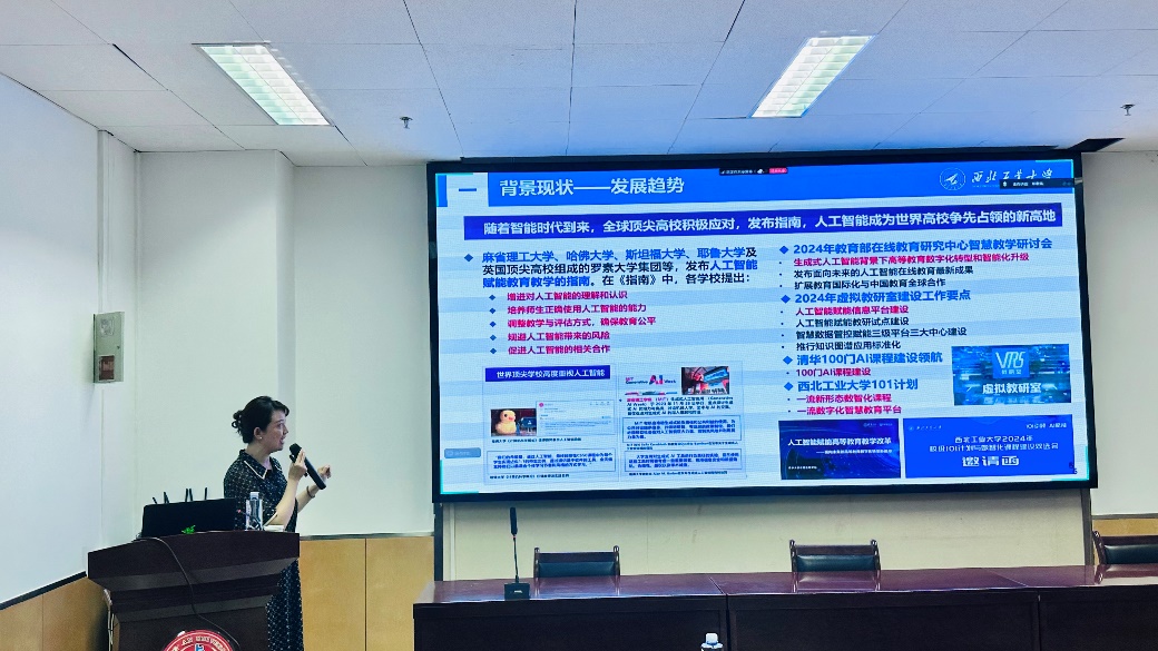 都琳从人工智能赋能教育的新趋势切入,分析了“师-生-AI”协同课堂教学模式的创新理念,结合西北工业大学《概率论与数理统计》课程的教学实践,详细阐释了将知识单元教学按“导论课-研讨课-总结课”三步法组织的创新设计。都琳还分享了AI技术在实现个性化学习、增强师生互动、优化教学评估等方面的具体应用案例,并针对智能时代教师角色转型、教学场景重构等关键问题提出了独到见解。报告结束后,都琳与线上线下参会老师进行了互动交流。参会教师纷纷表示,报告内容“既有前沿理论支撑,又具实操指导价值”,为探索AI与数学课程深度融合提供了新范式。