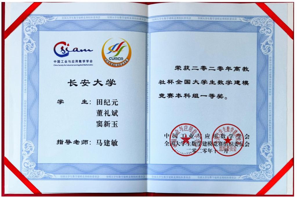2020年高教社杯全国大学生数学建模竞赛本科组一等奖