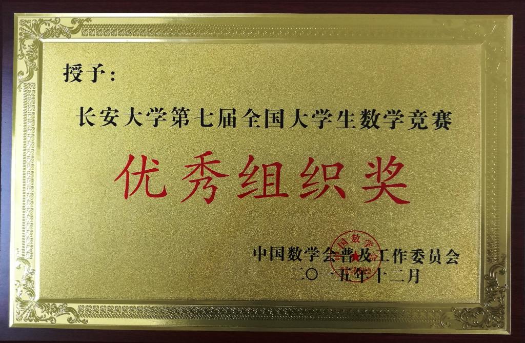 2015全国大学生数学竞赛优秀组织奖