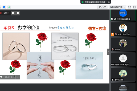 李辉来教授从课程思政的发展历程、建设内容、建设成效、建设案例展开本次讲座,对课程思政的研究理念、研究思路、研究方法、研究内容、研究成果进行了详细的阐述。李教授指出,大学数学与课程思政的融合可以从多方面入手,如数学思想与马克思主义哲学相结合、数学规律与自然辩证法相结合、数学发现与科学精神相结合、数学技术与人类进步相结合、数学哲理与品质培养相结合。李教授还指出,在课程思政过程中,应形成数学基础课程,建设具有思政功能的课程体系和案例平台等。