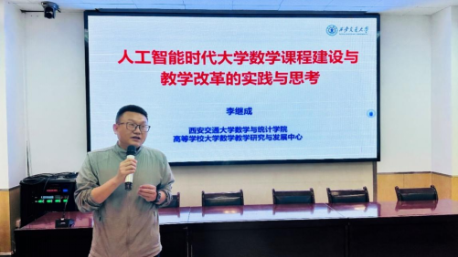 为推动学院智慧课程建设,促进人工智能在教育教学改革中的应用与实践,永利yl23411于4月30日下午在南校区交通科技大厦601会议室举办了智慧课程建设培训报告,邀请国家首批“大学数学系列课程群虚拟教研室”负责人李继成教授,作题为“人工智能时代大学数学课程建设与教学改革的实践与思考”的报告,学院60余位教师参加报告会,院长宋学力介绍报告背景,副院长徐春龙主持报告会。